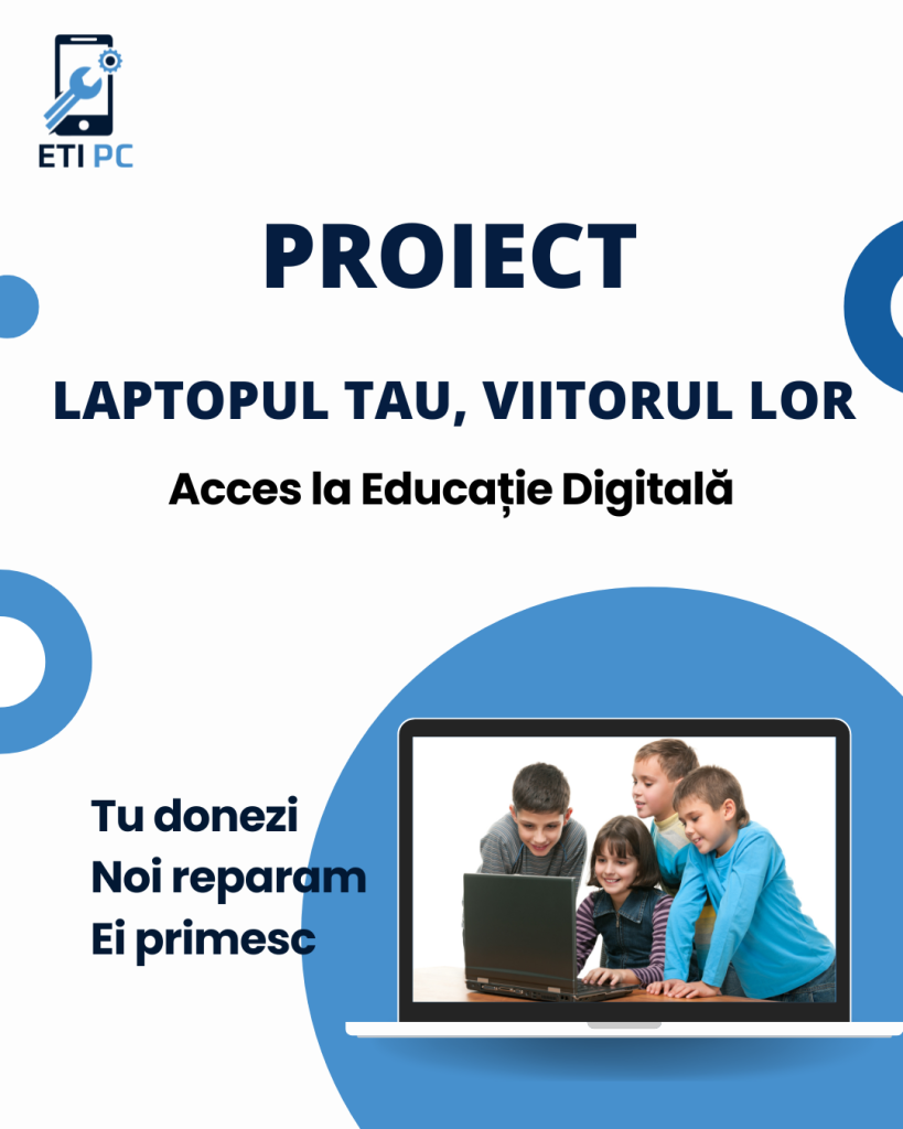 „Laptopul tău, viitorul lor” este un proiect activ al Asociației ETIPC, dedicat sprijinirii persoanelor care au nevoie de echipamente IT pentru educație, formare profesională sau activități de reintegrare socio-economică.